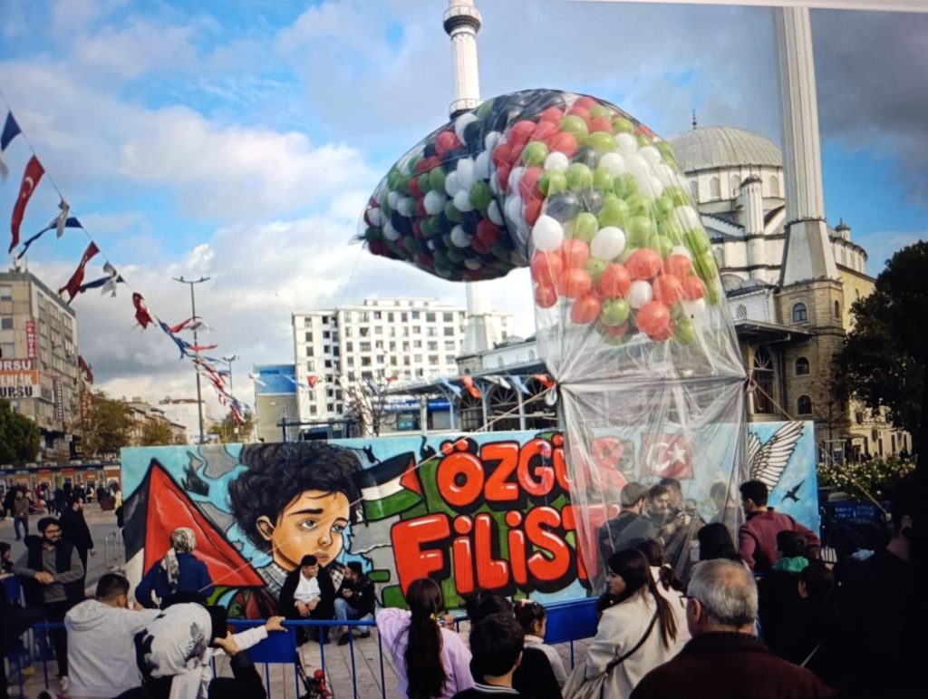 AK Parti Bağcılar İlçe Başkanı Muhammed Yavuz Gültepe, “Bugün AK Parti Bağcılar ailesi olarak Gazze’deki, Filistin’deki kardeşlerimiz hatırına inşallah balonlarımızı uçuracağız. Filistin bayrağının renklerindeki balonları uçuracağız. Bunu Gazze’deki İsrail’in 1967’den bu yana kadar sürdürmekte olduğu zulüm neticesinde orayı modern çağın en büyük açık hava hapishanesine çevirmesi üzerine inşallah oradaki açlık kriziyle ve kıtlık ile orada insani yardımların dahi engellemesi suretiyle yalnız bırakılan Müslüman kardeşlerimizin, Gazzeli kardeşlerimizin hatırasını unutmadığımızı ve bu davanın her zaman savunucusu olacağımızı, her zaman arkasında olacağımızı hatırlatmak üzerine Bağcılar halkımızla beraber inşallah balonlarımızı uçuracağız” dedi.