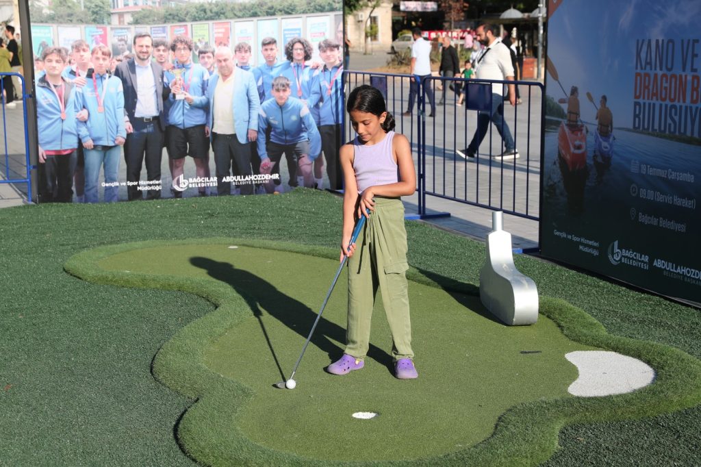 Bağcılar Belediyesi’ninBağcılar Meydanı’nda oluşturduğu Mini Golf Alanı, özellikle çocuklar ve gençlerin yoğun ilgisini çekiyor. Vatandaşlar, gözetmen öğretmenler eşliğinde golf sporunu öğrenme imkânı buluyor ve yeteneklerini geliştiriyor. Bağcılar Belediyesi ve Dünya Mini Golf Türkiye Temsilciliği ile ortaklaşa gerçekleştirilen etkinlikte katılımcılar 5,5 metreden oluşan golf stantlarındaki 9 parkurda öğrendikleri mini golf dalında yeteneklerini sergiliyor. Meydan aynı zamanda, denge sörfü ve futbol dart etkinliği ile akşam Gençlik Yaz Konseri’ne ev sahipliği yapıyor.