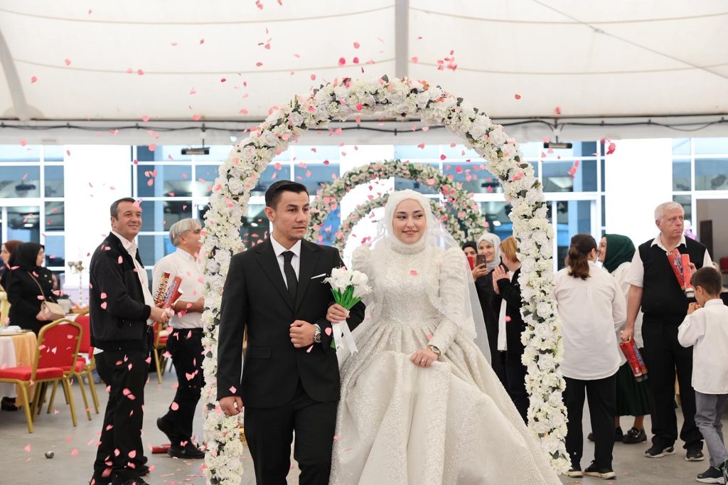 Çiftlerin yakınlarının da katıldığı programın sonunda iş adamlarınca evlenen çiftlere; oturma grubu, beyaz eşya ve mutfak takımından oluşan çeyiz seti hediye edildi.