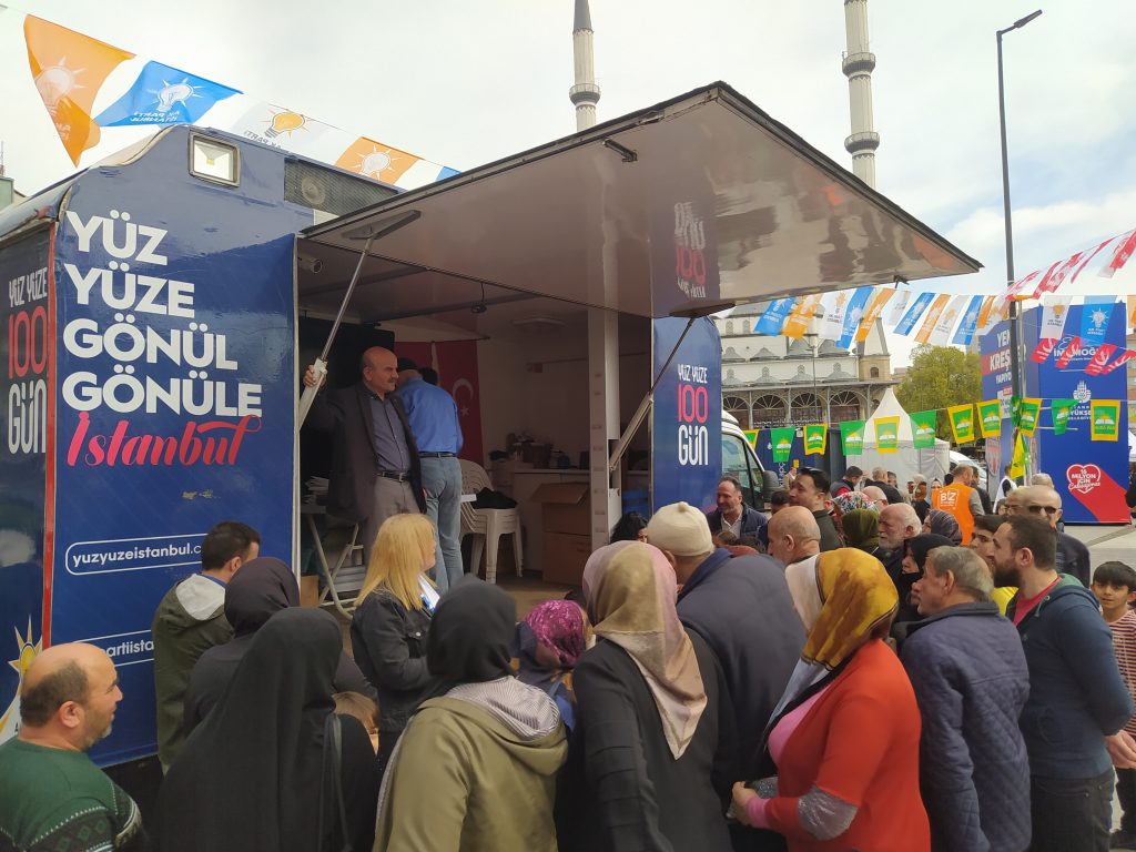 Bağcılar meydana girdiğinizde sizi siyasi partilerin stantları karşılıyor. Adalet ve Kalkınma Partisi, Milliyetçi Hareket Partisi, Cumhuriyet Halk Partisi, HÜDAPAR, Yeniden Refah Partisi, Büyük Birlik Partisi ve Yeşil Sol Parti stant kurmuşlardı.