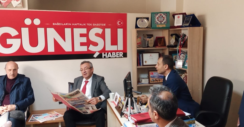 Bağcılar’ın ilk vetek haftalık marka gazetesiGüneşli Haber Gazetesine siyasi partilerin üst kadrolarından ziyaretler sürüyor. CHP Grup Başkanvekili Engin Altay, CHP İstanbul Milletvekili İlhan Kesici Güneşli Haber Gazetesi İmtiyaz Sahibi Mithat Sayar’ı gazetemizin merkezinde ziyaret ettiler.