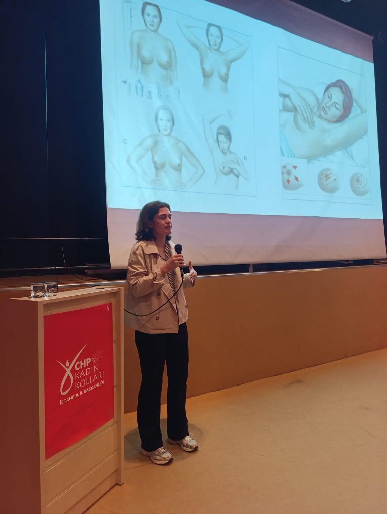 CHP Bağcılar İlçe Kadın Kollarının evsahipliğinde düzenlenen Meme Kanseri Farkındalık etkinliği Ebubekir Kültür Merkezinde Koç Üniversitesi Tıp Fakültesinden Prof. Dr. Ece Dilege ve ekibinin bilgilendirme ve dikkat çeken konuşmaları oldu.
