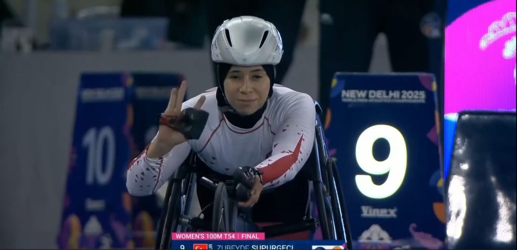 Bağcılar Belediyesi’nin diğer milli sporcusu Zübeyde Süpürgeci de güçlü rakipleri karşısında ter döktü. Son ana kadar mücadele eden Süpürgeci, 100 metre T54 kategorisinde dünya ikincisi oldu ve gümüş madalya elde etti. İkinci olduğu anons edilen Süpürgeci gözyaşlarını tutamadı.