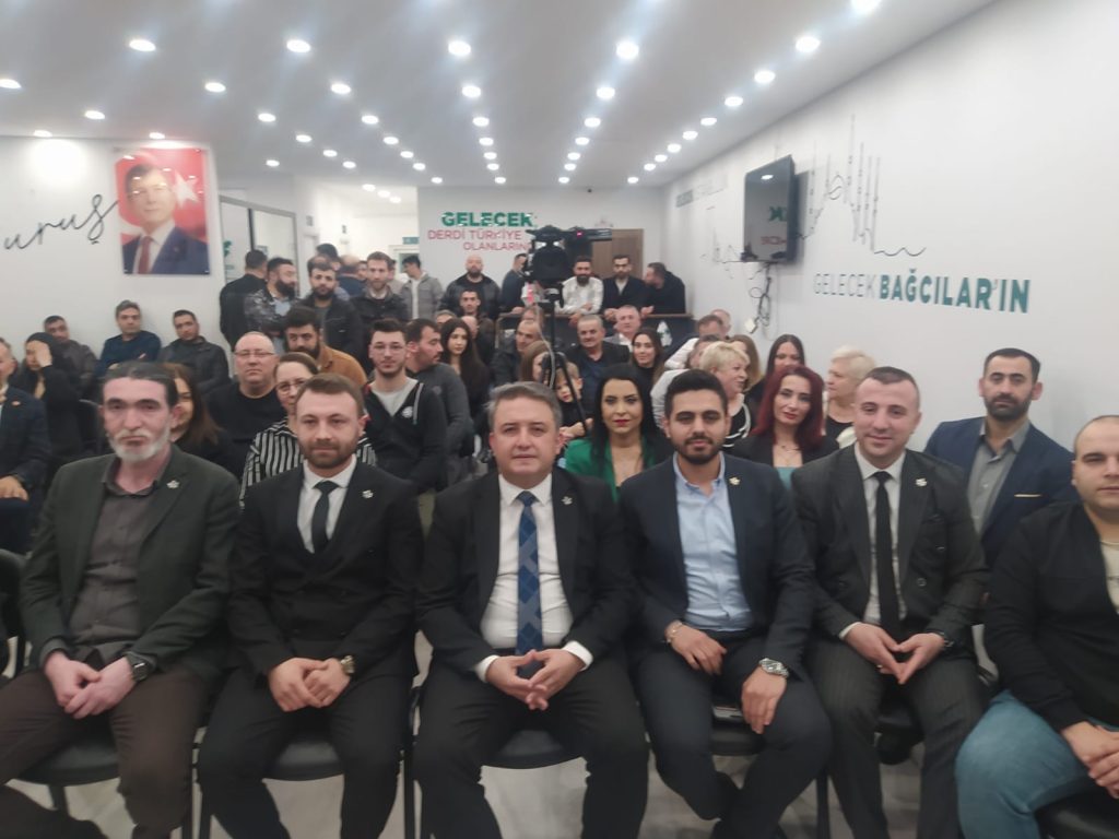 Gelecek Partisi İstanbul İl Başkanı İsa Mesih ŞAHİN, Gelecek Partisi İstanbul 3. Bölge Milletvekili aday Adayı Dr. Hüseyin BUDAK, il yöneticileri ,14 ilçe başkanı, Bağcılar ilçe yöneticileri ve üyelerinin katılımıyla ilçe binasında gerçekleşen toplantıda kendisine verilen görev için teşekkür eden yeni İlçe Başkanı Mertcan KAPLAN, teşkilat tarafından sloganlar ve alkışlar eşliğinde tebrik edildi.