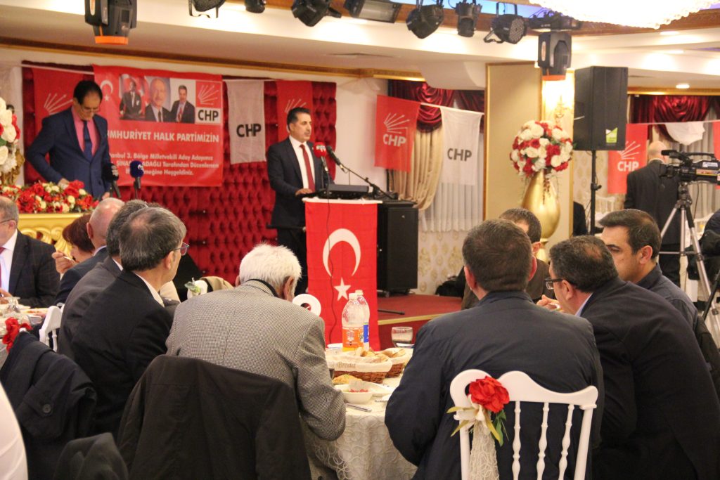 Cumhuriyet Halk Partisi İstanbul 3.Bölge Milletvekili Aday Adayı Şinasi Aladağlı aday tanıtım toplantısı Güneşli meydanda bulunan bir düğün salonunda iftar daveti ile yapıldı. STK Başkanları, Kars, Ardahan, Iğdır Derneklerinin Federasyon başkanları, iş insanları, siyasiler, CHP’liler ve çok sayıda davetli katıldı.