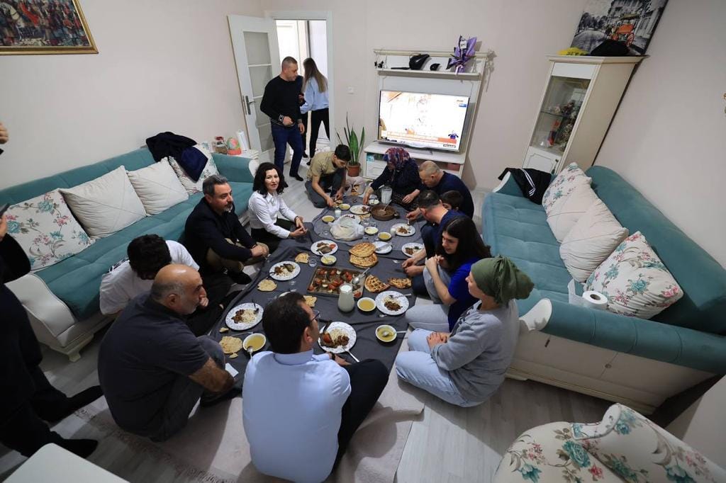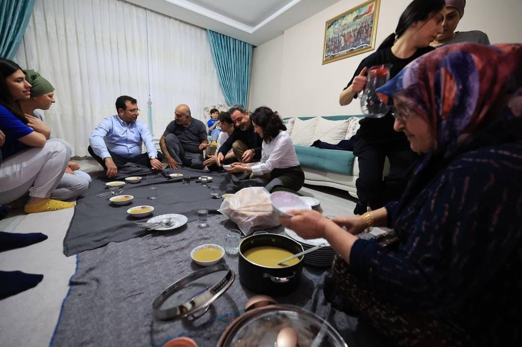 İmamoğlu da bu görüntüleri, “Bu akşam iftarımızı Bağcılar’da Biçer ailesinin sofrasında yaptık. Hepsi birbirinden güzel bu insanları tanımak ve evlerine misafir olmak çok güzeldi. Allah tutulan tüm oruçları ve iyi dilekleri kabul etsin” diyerek paylaştı.