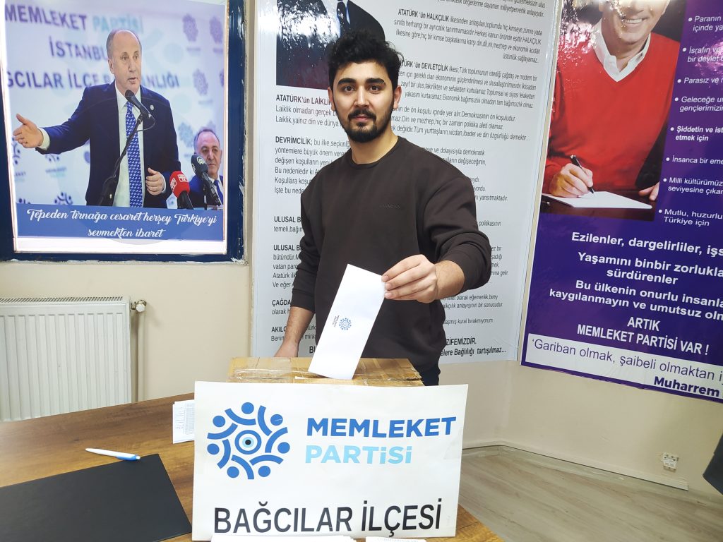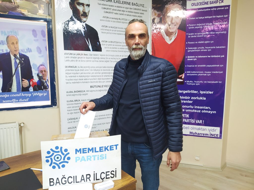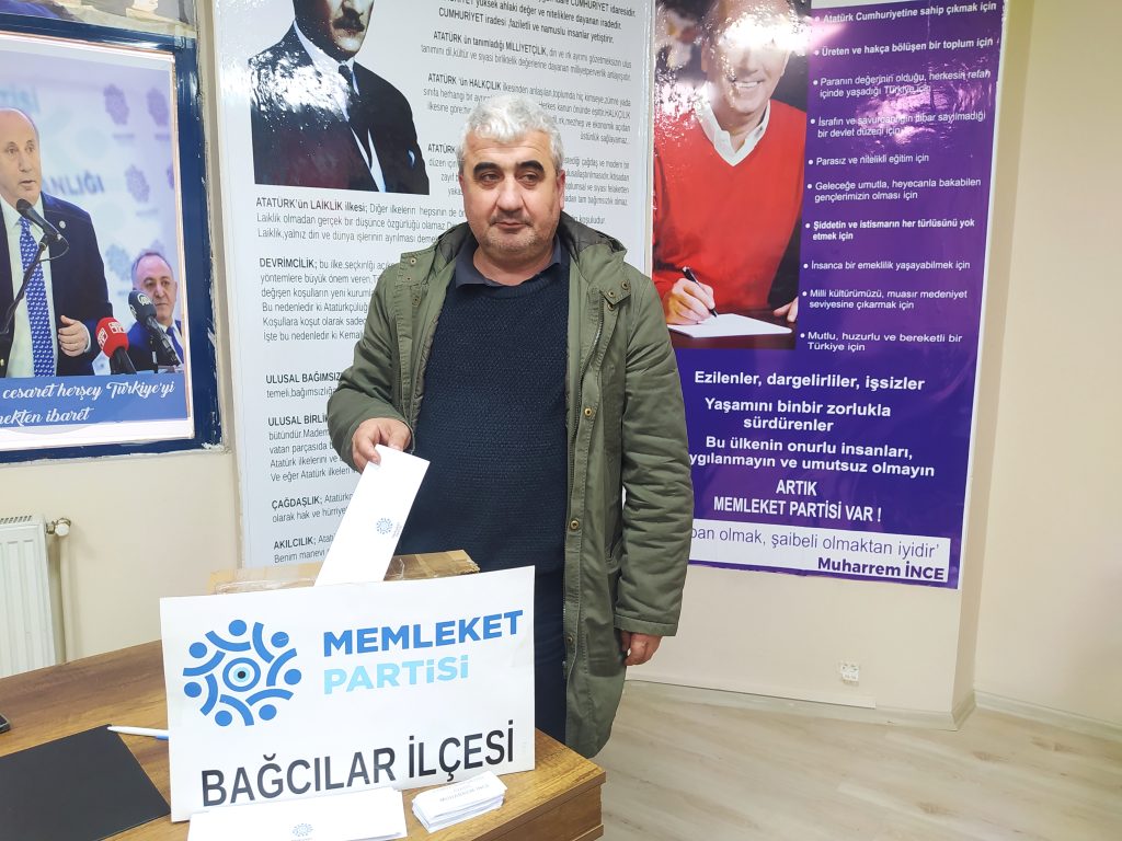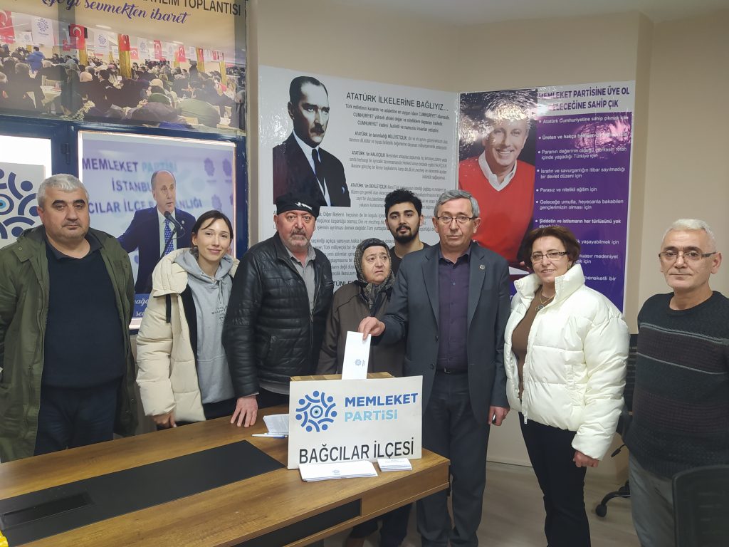 Türkiye’nin her ilçesinde olduğu gibi Memleket Partisi Bağcılar İlçe Başkanlığı’nda da Cumhurbaşkanlığı adaylığı için sandık kuruldu. Kurulan sandıkta Memleket Partisi Bağcılar İlçe üyeleri ilçe merkezine gelerek oy kullandı.
