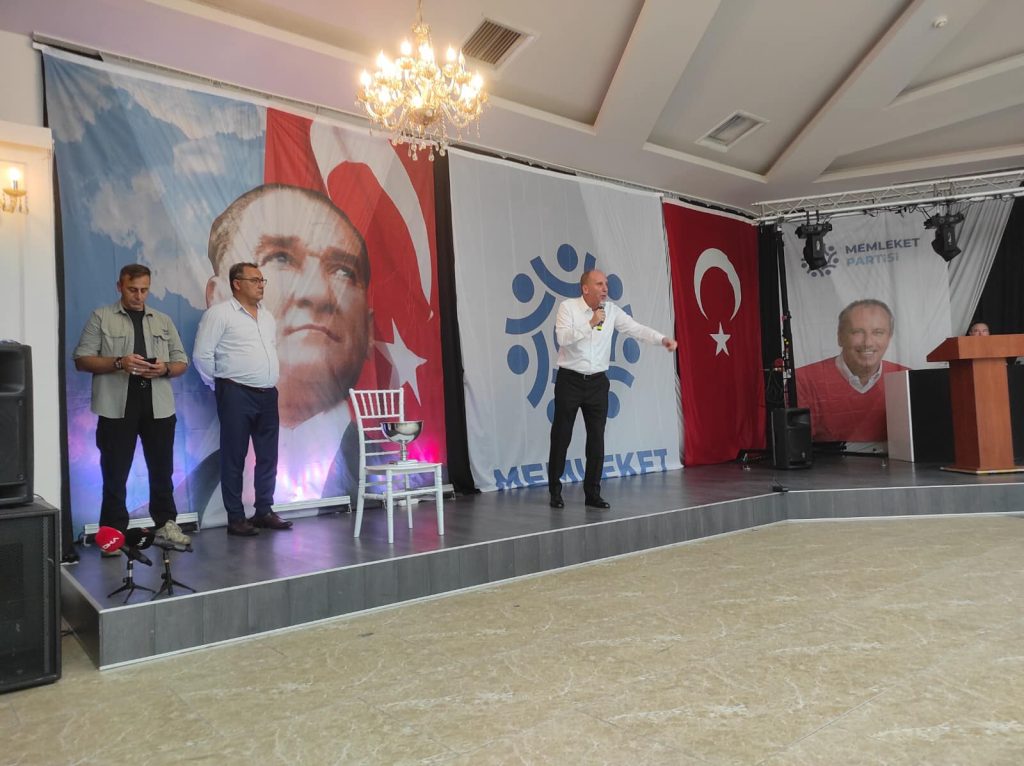 İnce, partisinin il örgütünün yumuşak uslûp kullanmalarını ifade ederek “İstanbul’u ayağa kaldırmadan, Türkiye’de Memleket Partisini ayağa kaldıramayız. Ayda bir kez uğrayacağım buraya her ay bir kez.” dedi. İnce, “Yerel seçimde aynı palavrayı yeniden sunacaklar; ‘Şimdi zamanı değil, herkes çekilsin, biz seçime gireceğiz’ Yok öyle yağma, biz de seçime gireceğiz. Hiç kusura bakma baştan söylüyorum; ‘Oyları bölme, çekil önümüzden’ Geç bu işleri, bir kere çekildik. Kendine güvenmiyorsan zorla mı oy verdireceksin kendine? Çıkacaksın aday olacaksın, öyle yağma yok” ifadelerini kullandı.