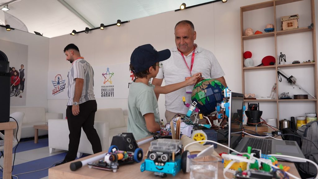 KADEM Vakfı Mütevelli Heyet Başkanı Sümeyye Erdoğan Bayraktar, TEKNOFEST 2025’te Bağcılar Belediyesi Feyzullah Kıyıklık Engelliler Sarayı standını ziyaret etti. Teknoloji sınıflarında hazırlanan robot ve ürünleri yakından inceleyen Erdoğan, Engelliler Sarayı’nın çalışmalarını çok beğendi.