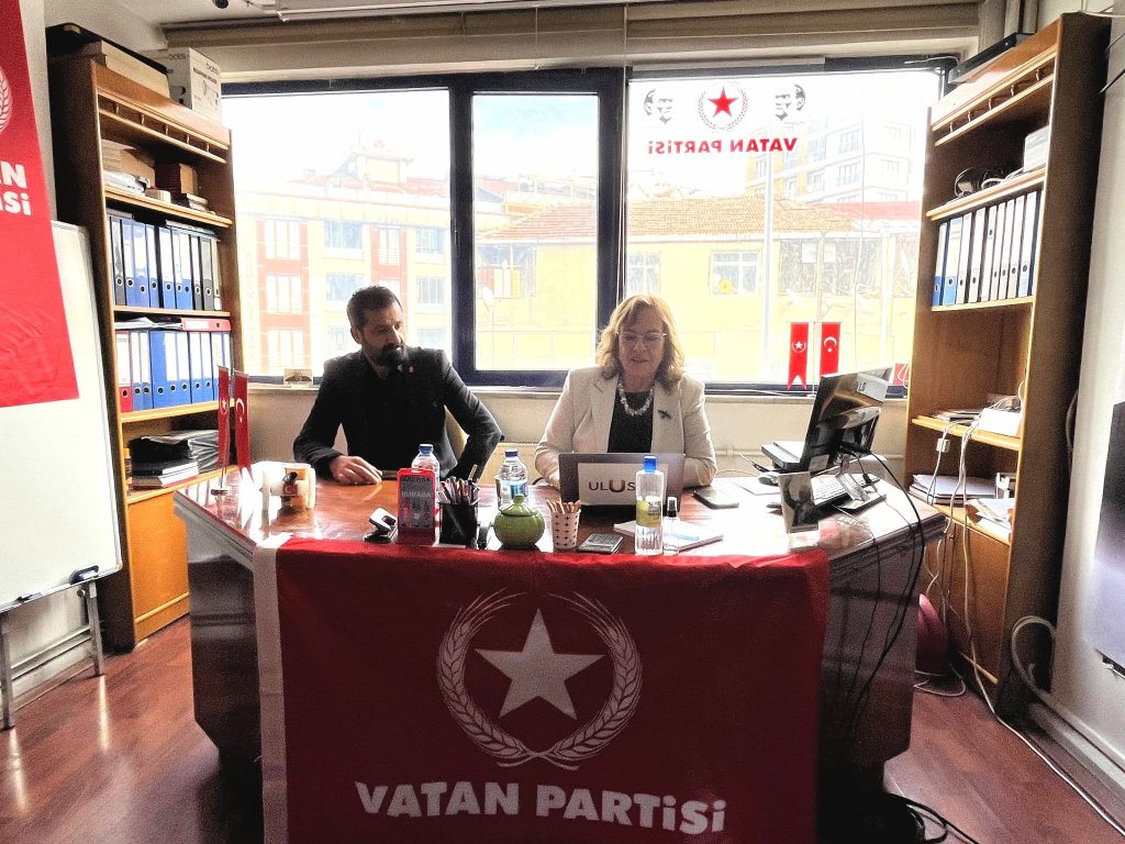 Vatan Partisi Bağcılar İlçe Başkanlığı, Vatan Partisi MYK Üyesi ve Ulusal Strateji Merkezi Başkanı Şule Perinçek’in “Büyük Kararın Eşiğinde Türkiye-Rusya-Çin-İran İttifakı” başlıklı söyleşisi Vatan Partisi Bağcılar İlçe Başkanlığında yapıldı.